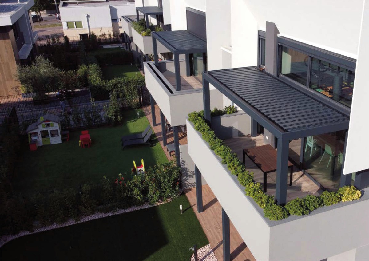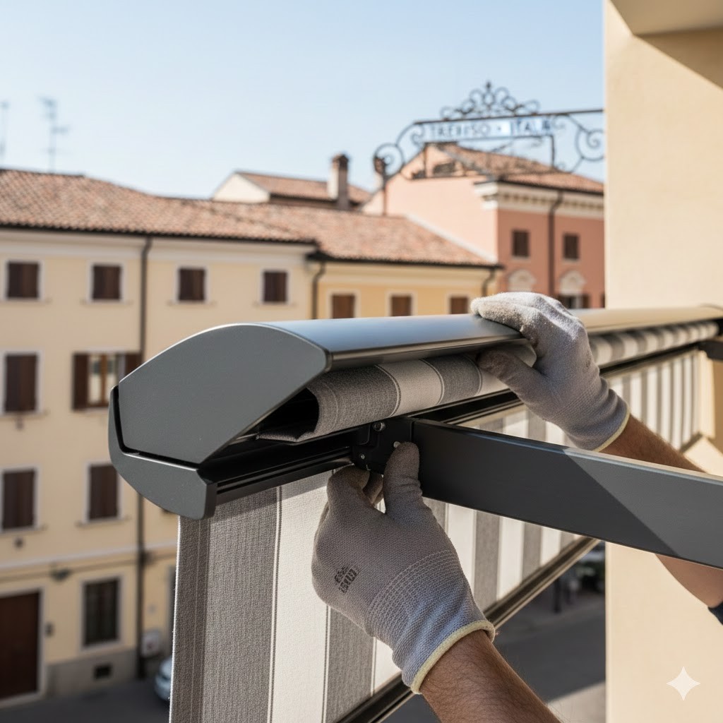 Selezioniamo solo materiali Made in Italy: profili in alluminio ad alta resistenza, finiture a polveri per esterno, tessuti acrilici tinti in massa che non scoloriscono e componenti in acciaio inox. Ogni fornitura segue una filiera controllata e rispetta gli standard europei: estetica, solidità e affidabilità nel tempo.