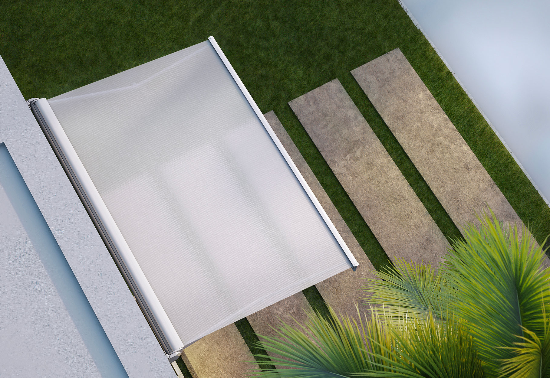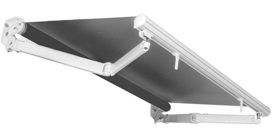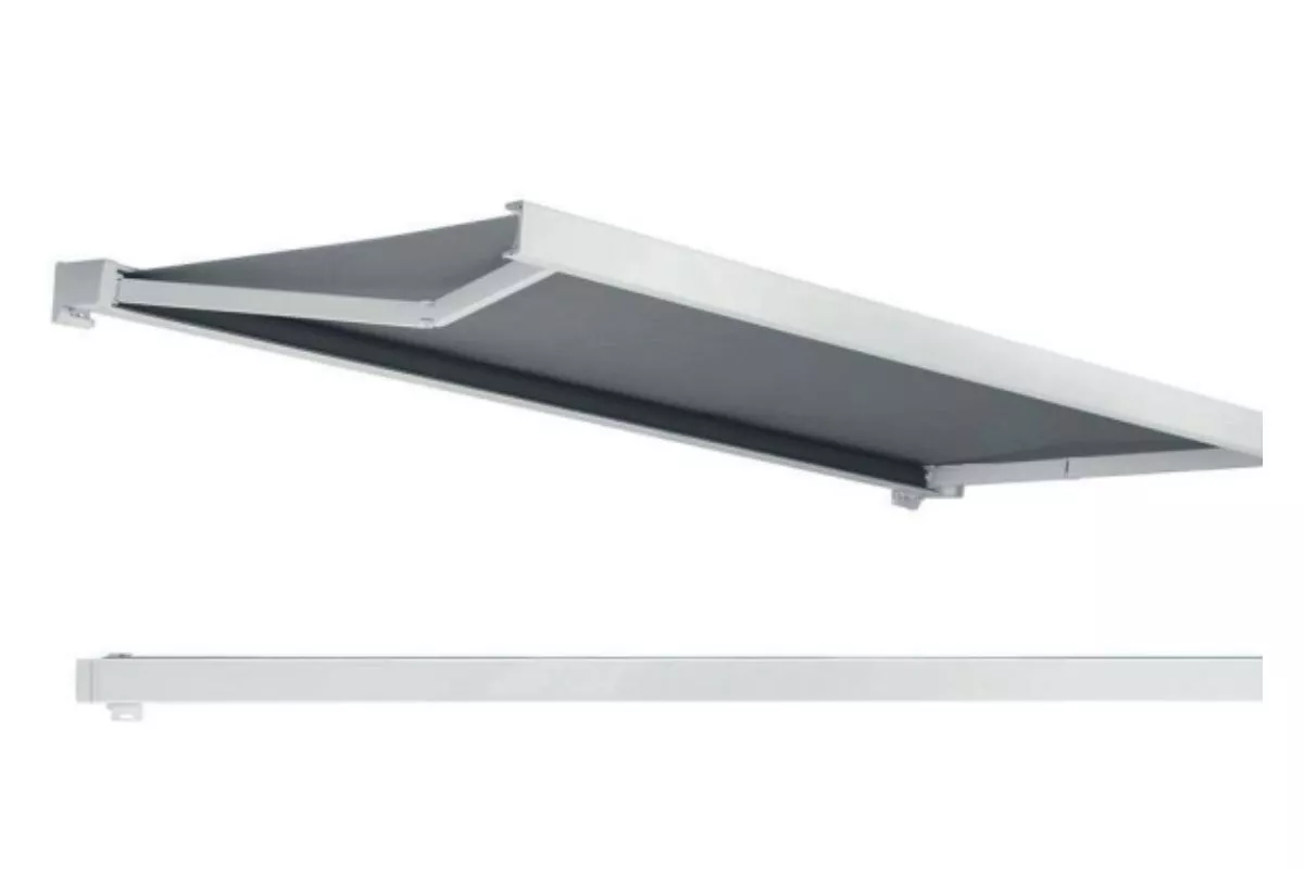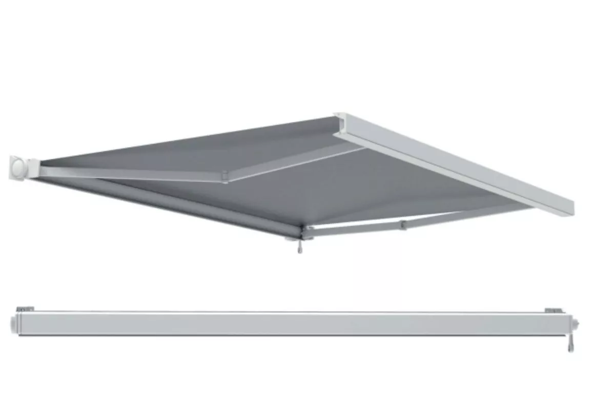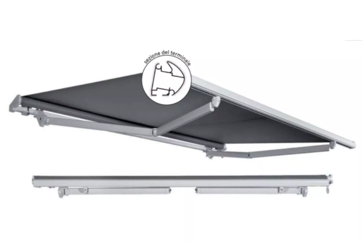 Una tenda a bracci semi-cassonata che protegge il tessuto dagli eventi atmosferici come una cassonata integrale, ma con una struttura più essenziale che riduce drasticamente i costi.