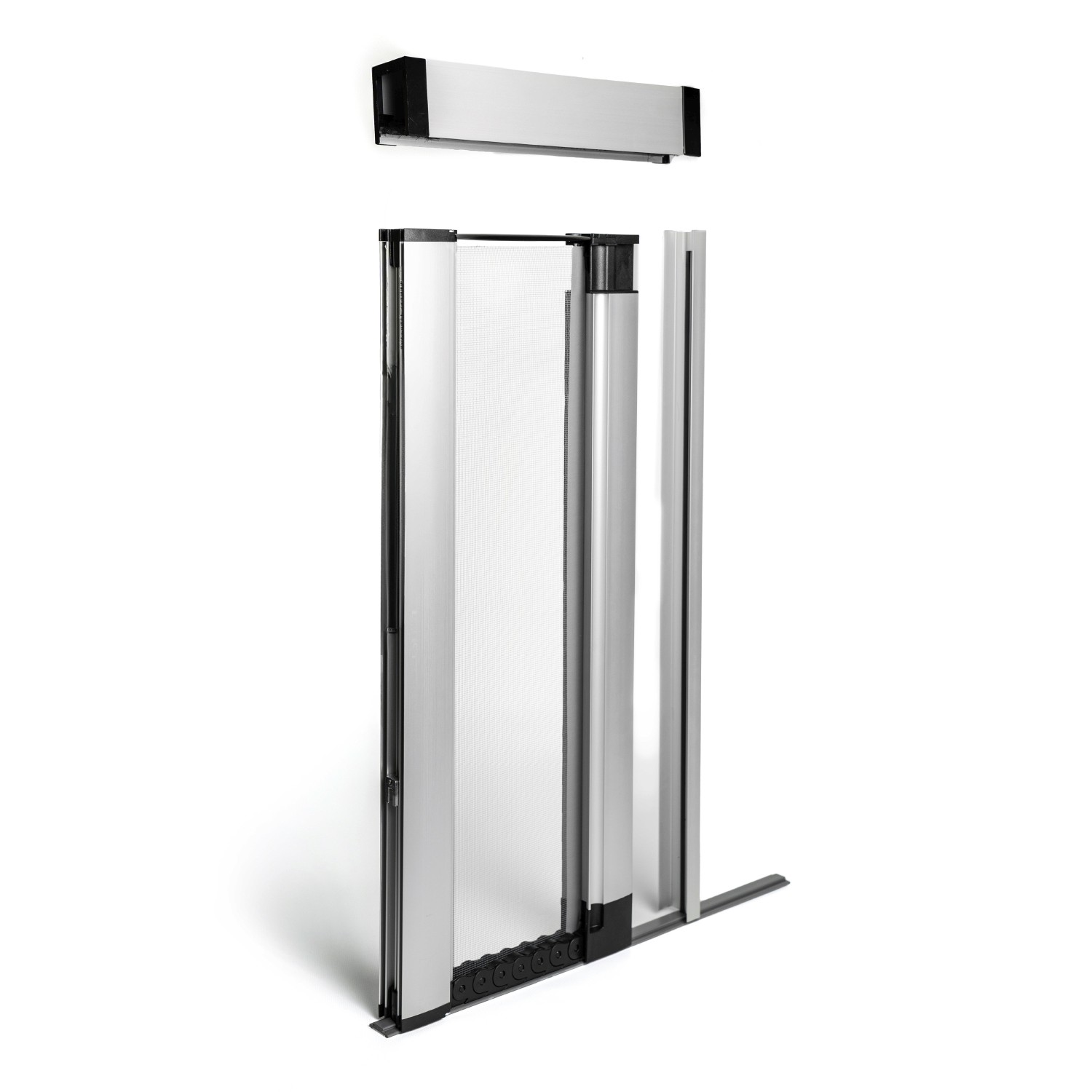 Una zanzariera a scorrimento laterale ergonomica e sicura, dotata di guida a pavimento ultra-piatta (3 mm) anti-inciampo, ideale per portefinestre molto frequentate.